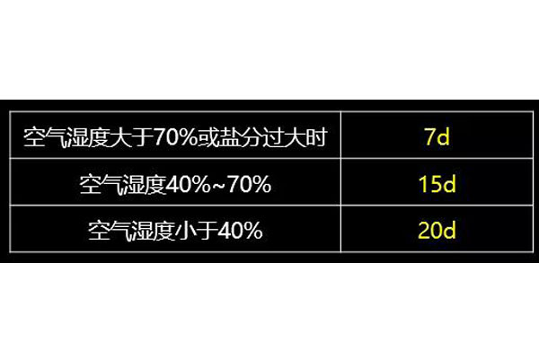 (4)穿束后至孔道灌漿完成應(yīng)控制在下列時間以內(nèi),否則應(yīng)對預(yù)應(yīng)力筋采取銹措施: